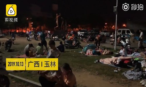 星期六晚上10:55,中国南部广西壮族自治区榆林市发生5.2级地震,该地区的人大逃亡。照片:Pear Video的视频中的Screeshot