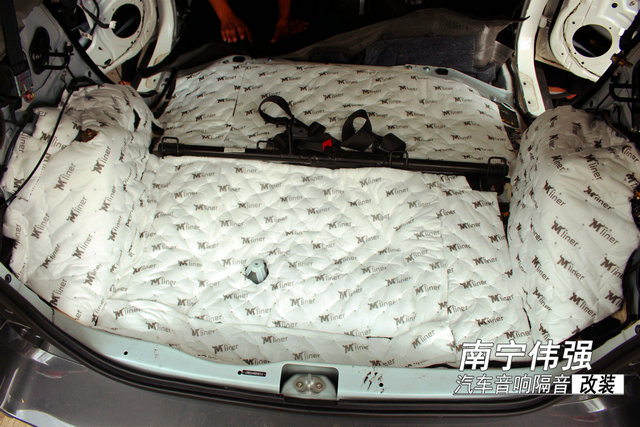 这样整个隔音施工就结束了,之后我们对车辆进行小心的复位,然后对全车进行检查,这辆车在舒适性上就可以提升了一个档次了。百色汽车音响隔音改装舒适性可以提升一个档次,伟强改装。